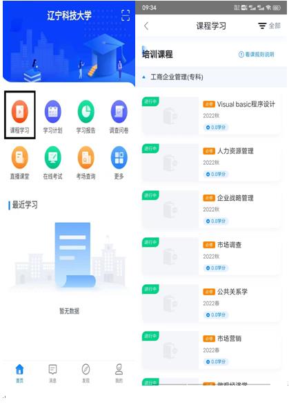 1、登錄后,進(jìn)入主頁(yè)面,找到學(xué)習(xí),然后選擇課程學(xué)習(xí)。