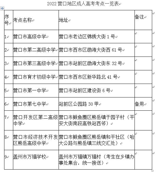 1.在原有營口市內(nèi)考區(qū)和鲅魚圈考區(qū)的基礎(chǔ)上,增設(shè)蓋州市考區(qū),設(shè)蓋州市萬福學(xué)校考點(diǎn)。